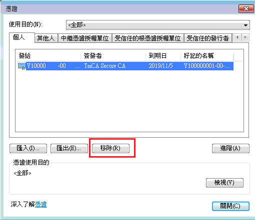 " 憑證即順利移除!
